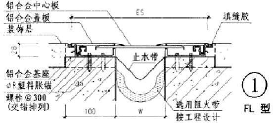 金屬卡鎖型地坪變形縫——增加蓋板厚度,提高承載能力,采用滑桿確保變形縫裝置變位時仍能保持中心及原有位置。