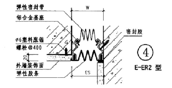 橡膠嵌平型外墻變形縫裝置——具有高彈性的熱塑料膠條與鋁合金框架組合成體,可應對建筑物的沉降、伸縮、震動等全方位變形,防水抗震,安裝后與外墻表面接合平整,美觀。 型號:ER1,ER2,E-ER1,E-ER2,SER1,SER2 ◎ 可承受建筑物的沉隆、伸縮、地震全方位變形; 具有優良的防水性能和抗震性能; 外層橡膠可與外墻顏色相配。